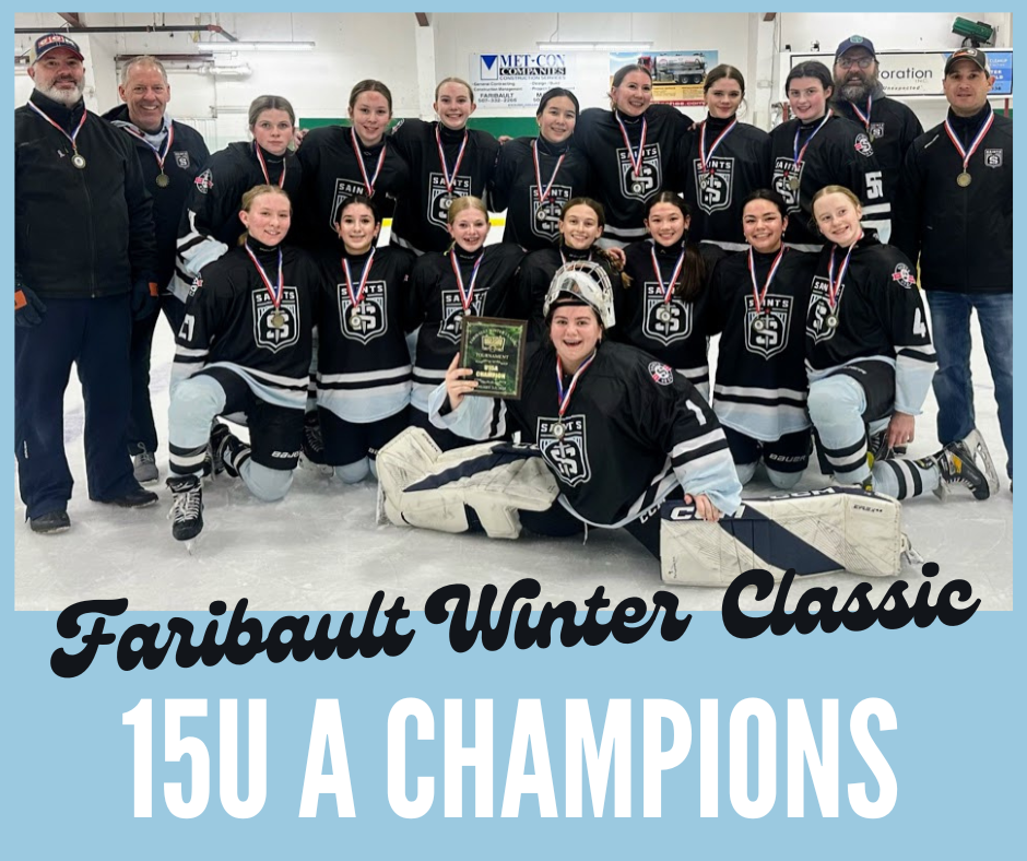 The Saints 15U A team had quite a weekend at the Faribault Winter Classic. It didn’t start out so well though. They faced a tough Moorhead team straight out of the gate on Friday night, taking a tough 4-0 loss. This team showed tons of resilience though and bounced back with a pair of wins Saturday. That resulted in a rematch with Moorhead for the ‘chip. The Saints reached deep finding the back of the net 6 times to beat Moorhead 6-3. Congrats on taking first place this weekend!!