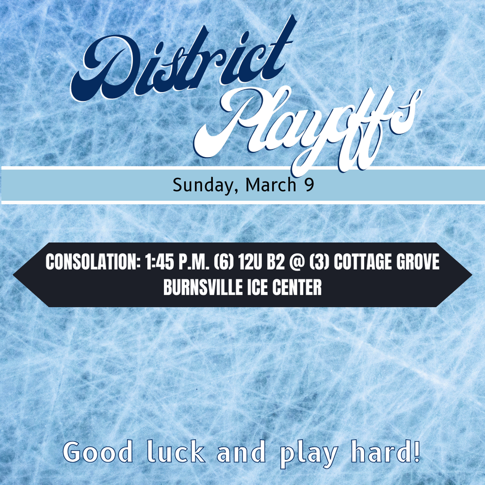 They face off against (3) Cottage Grove tomorrow at 1:45 p.m. at the Burnsville Ice Center.