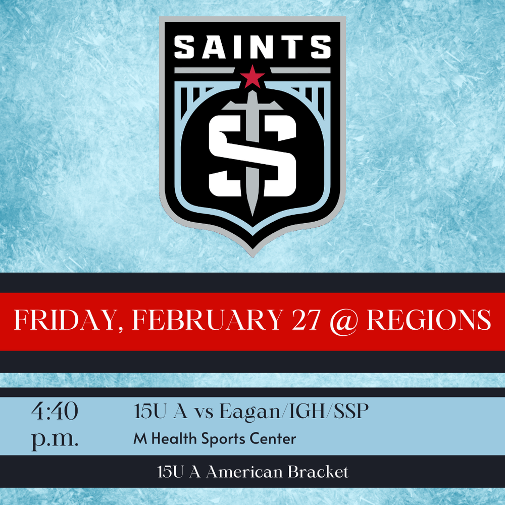 C'mon out and support the Saints 15U A team in their Drive to State. Check out full bracket, scores and schedule below. If you can't make it in person, you can stream live on MNHockey.tv.