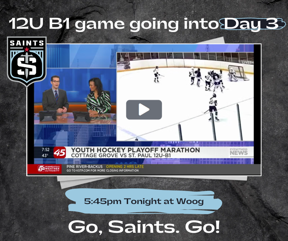 This is not a drill! An incredible youth hockey playoff game between our Saints 12U B1 team and Cottage Grove has turned into an epic, multi-day endurance test! Starting Monday night, these tenacious teams played through regulation and six overtimes, suspended at 1-1. They resumed Tuesday, grinding through four more OTs, and guess what? Still tied!
